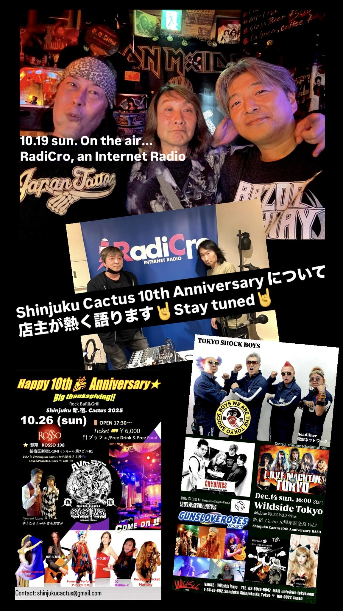 今回はopen10周年を迎えるロックバー新宿「Cactus」のマスターであるKENTさんをお迎えして、10th Anniversary Eventに向けての熱い思いを伺っていきます!シンガー、バンド、ダンサー、お笑い等々、様々なジャンルのゲストでお送りする2日間のイベントについて語っていただきながら、KENTさんのルーツやフェイバリットな曲をかけていく30分!是非お聴きください!